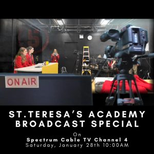 When the class formed last fall, the students immediately began airing daily live broadcasts under the moniker Teresa Broadcasting Company to the STA campus community of approximately 700 people. Seeing its initial successes – which included a regional Future Business Leaders of America (FBLA) award – the class instructors presented this semester’s students with a challenging opportunity: create a 30-minute TV special that would be shown on cable TV and available to a broader audience. The students eagerly started planning and production, and will be showing their work – a final project for the class – Saturday, Jan. 28, at 10 a.m. on Spectrum Channel 4.