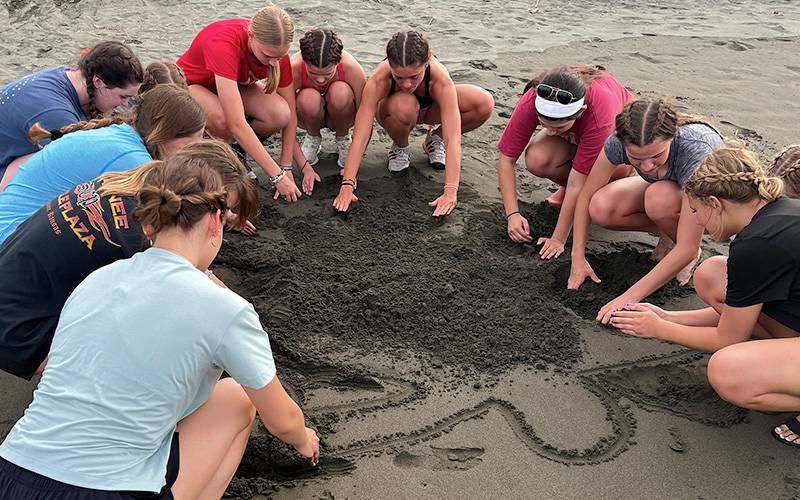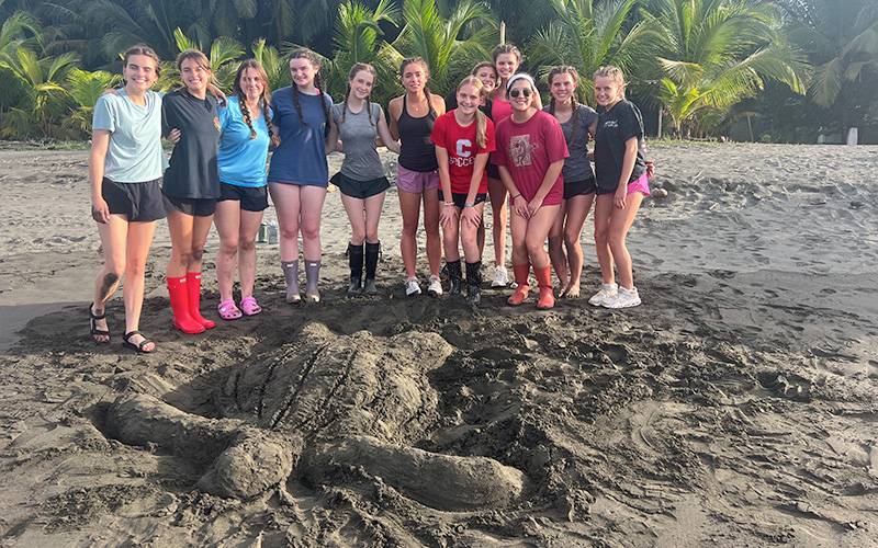 The students participated in nightly turtle censuses, walking the beach in pitch darkness for hours, calling out “stick” or “log” to warn walkers behind them of obstacles. “I got horrible blisters,” Evie said, “and had to have my feet wrapped one night.” They witnessed leatherback turtles nesting, helped dig holes for eggs, and learned about the turtles’ delicate process of camouflaging nests to protect them from predators. “Touching a leatherback sea turtle might have been be a once-in-a-lifetime experience,” Evie said. “It really put life into perspective.”