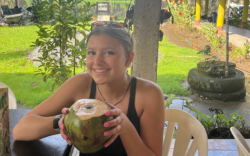 The group flew into San Jose, Costa Rica, and traveled by boat to a remote marine reserve, where they stayed in rustic cabins on the beach. “My cabin didn’t even have a door,” Evie recalled, laughing. “Bats got in at night. It was messy, humid and buggy – definitely a few steps outside my comfort zone.” Despite the challenges, both described the experience as “wonderful” and transformative.